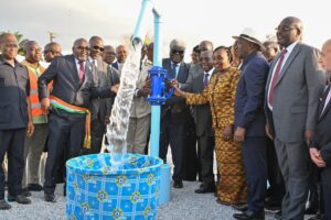 Le Premier Ministre Dr Beugré Mambé a procédé, ce jeudi 18 septembre 2025, à l’inauguration d’un château d’eau moderne destiné à transformer durablement l’accès à l’eau potable à Toumodi et ses environs. Grâce à ce projet, la production locale passe de 7 000 à 17 000 m³/jour, et les capacités de stockage de 900 à 2 800 m³, renforçant ainsi le réseau de distribution sur près de 130 km. L’infrastructure, d’un coût de 35,8 milliards FCFA est financée par la coopération belge.